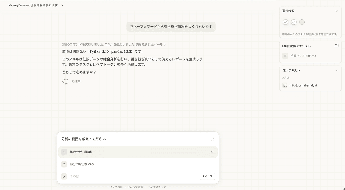 今回は「読ませる」使い方として、私が個人的に作ってみた「MFC仕訳アナリスト」というSkillを紹介します。