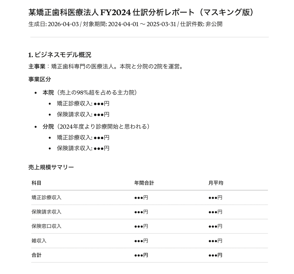 そこからは仕訳の取得→分析→レポート生成まで全自動です。