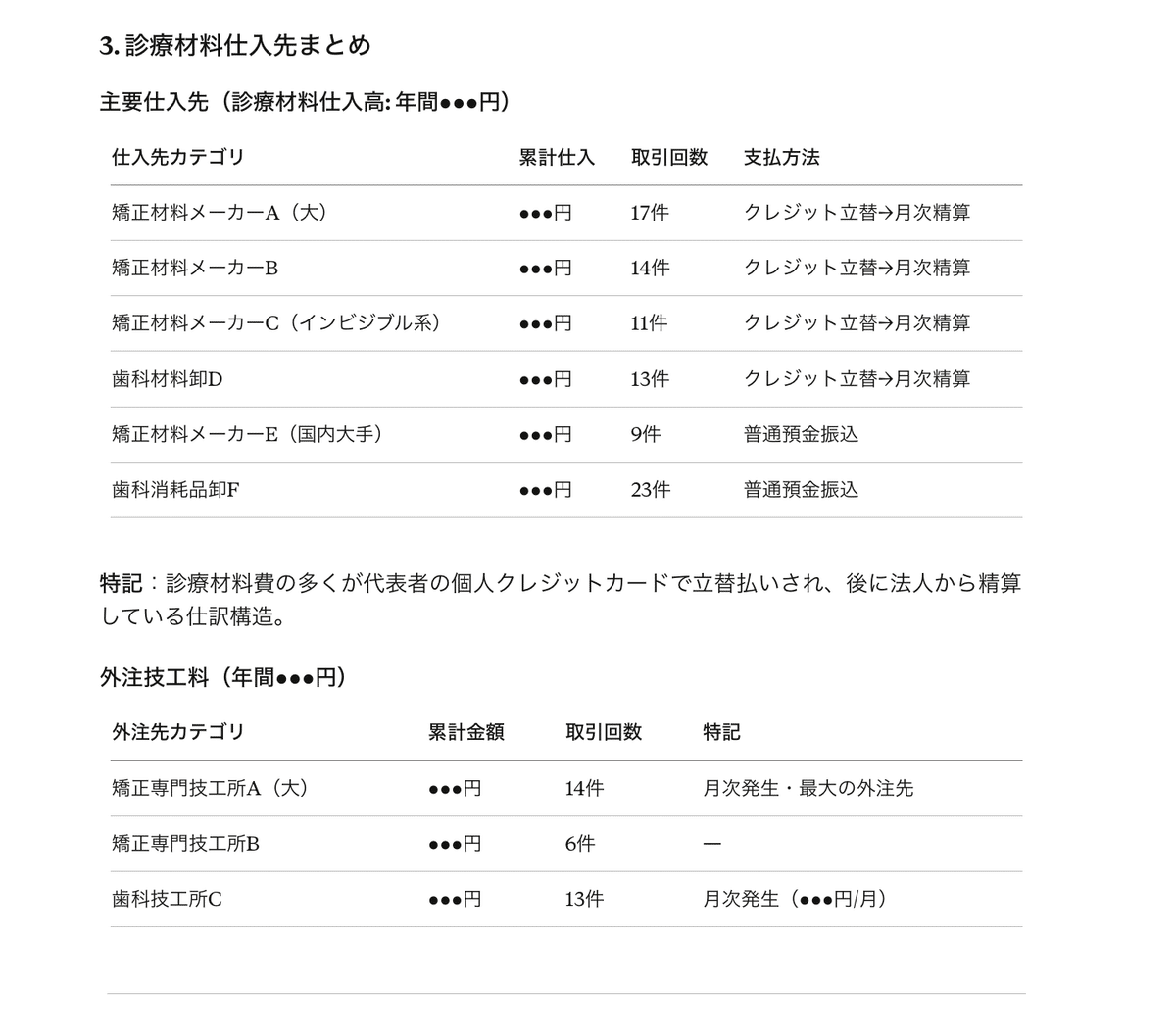 「御社の主要な仕入先は〇〇社と△△社ですね。この二社の支払サイトが少し長めですが、これは契約上そうなっていますか?」という入り方が初回からできるようになります。