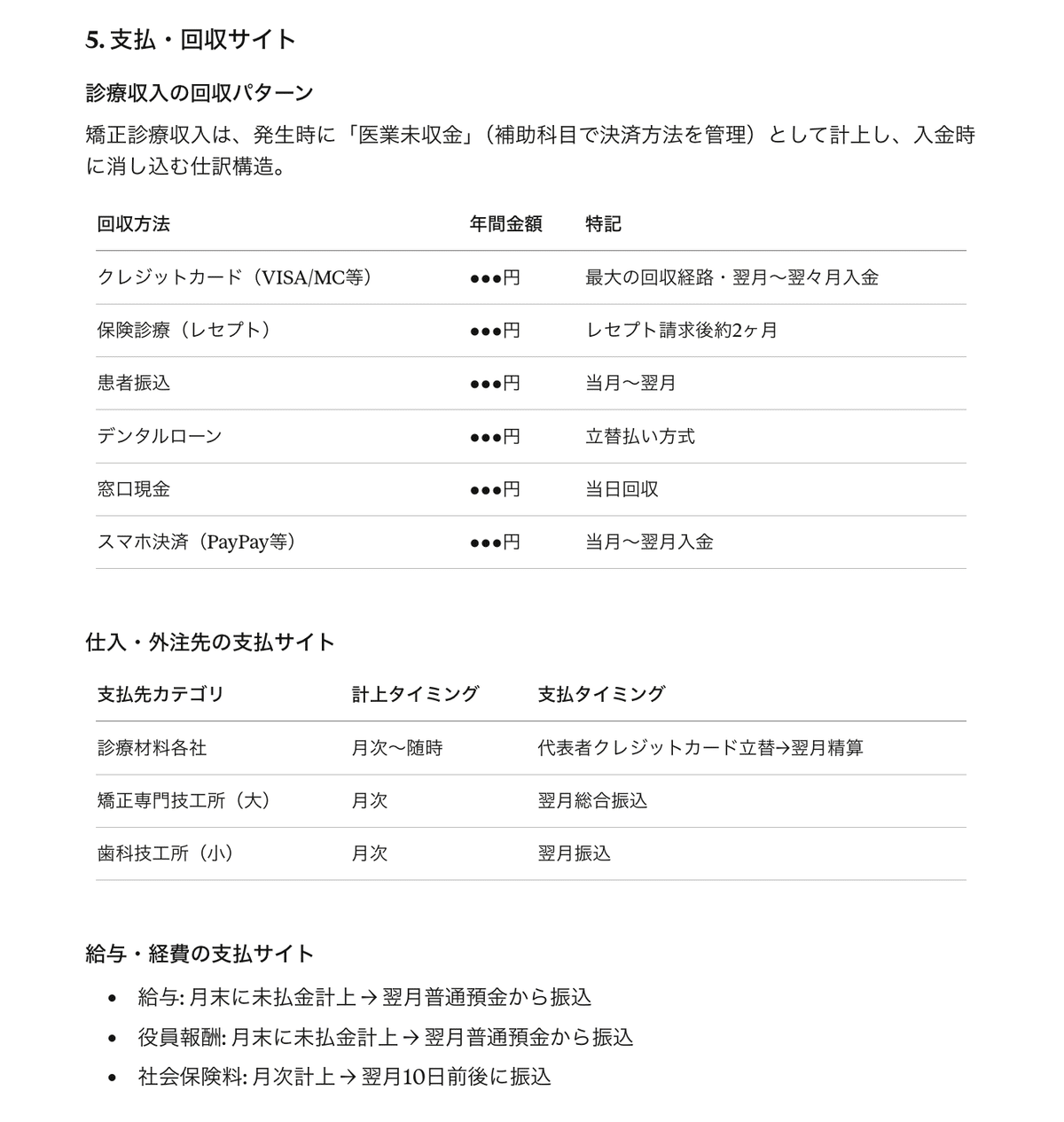 「この会社は月末に〇〇社から入金があって、給与は翌月5日払いで……」という情報がレポート一枚に整理された状態で出てきます。レポートを見てから試算表をみると理解スピードが格段に上がります。