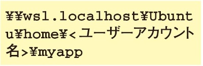 request.txtをUbuntu側のmyappディレクトリにコピーします。Windowsのエクスプローラーを起動し、アドレスバーに次のパスを入力します。