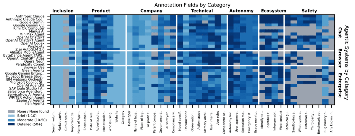 Staufer, Leon, et al. "The 2025 AI Agent Index: Documenting Technical and Safety Features of Deployed Agentic AI Systems." arXiv preprint arXiv:2602.17753 (2026).