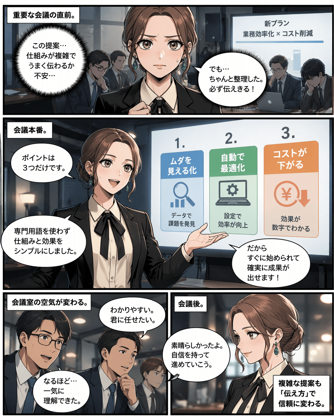 • ストーリー仕立ての漫画